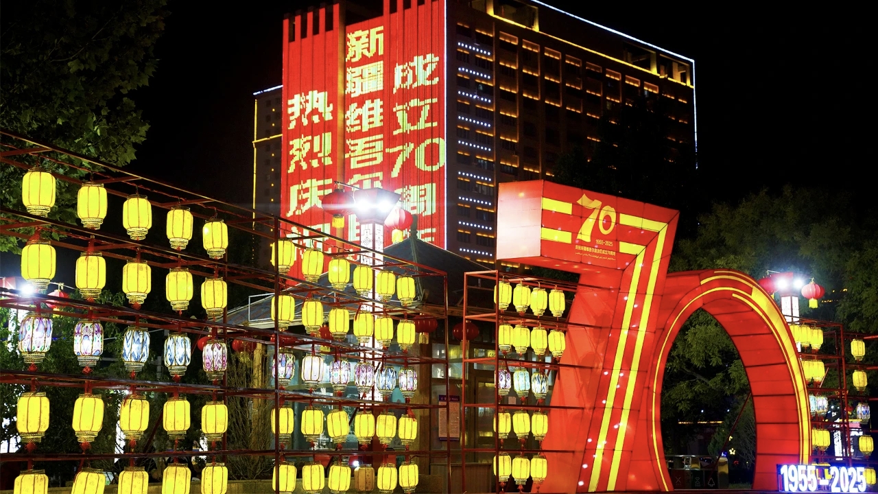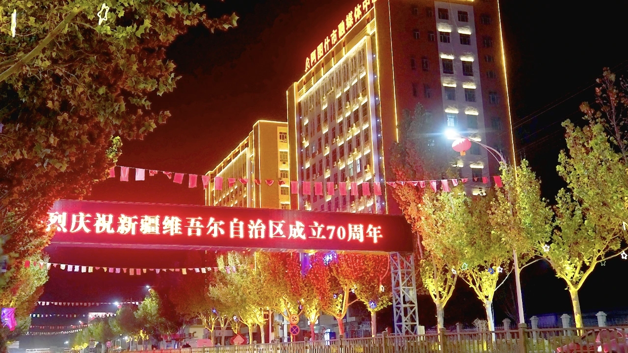 当暮色降临,阿图什的夜晚被盛典的灯火点燃!为迎接新疆维吾尔自治区成立70周年,整座城市披上流光溢彩的庆典盛装,每一束光都在诉说骄傲,每一抹红都澎湃着深情。