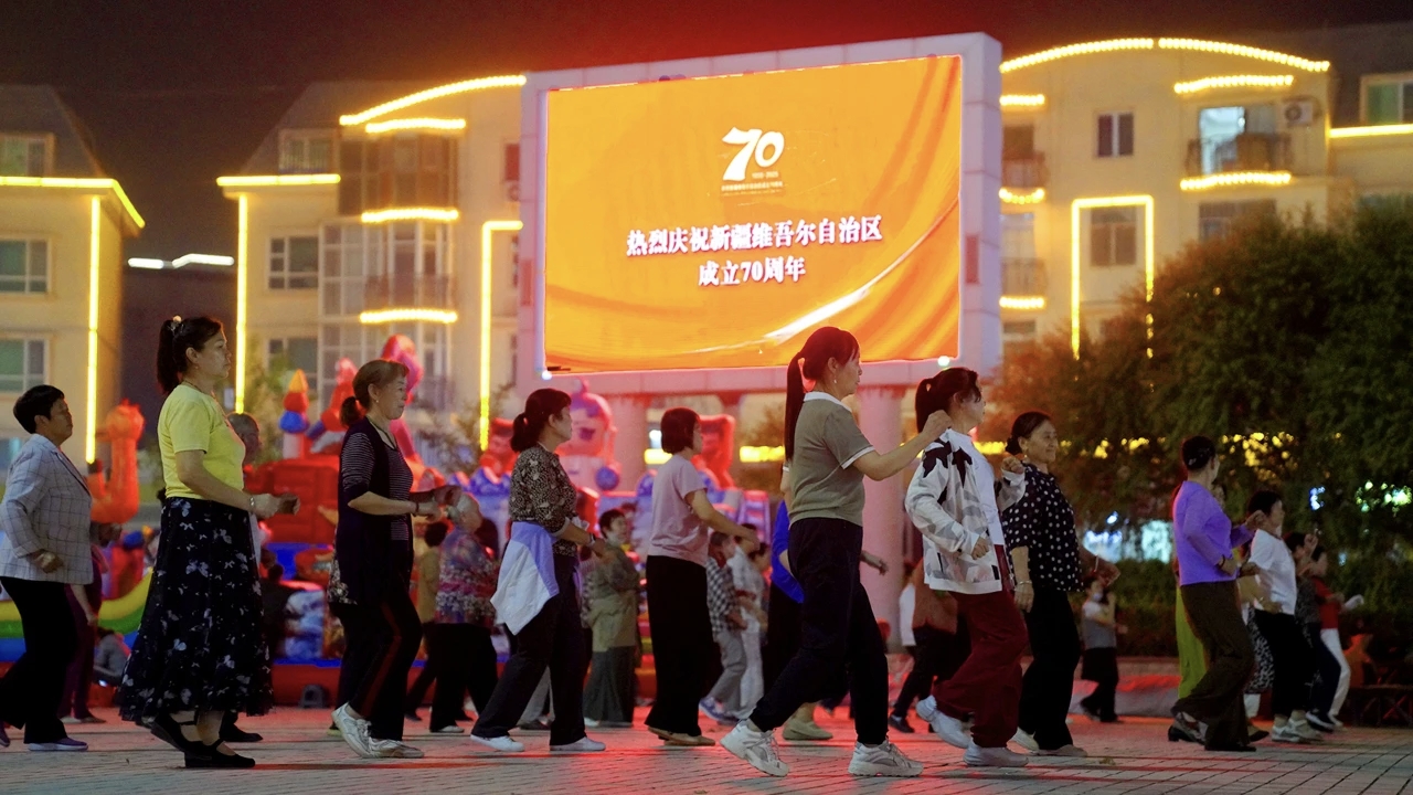 砥砺奋进七十载 天山南北谱华章丨夜幕下的阿图什 灯火里的中国红