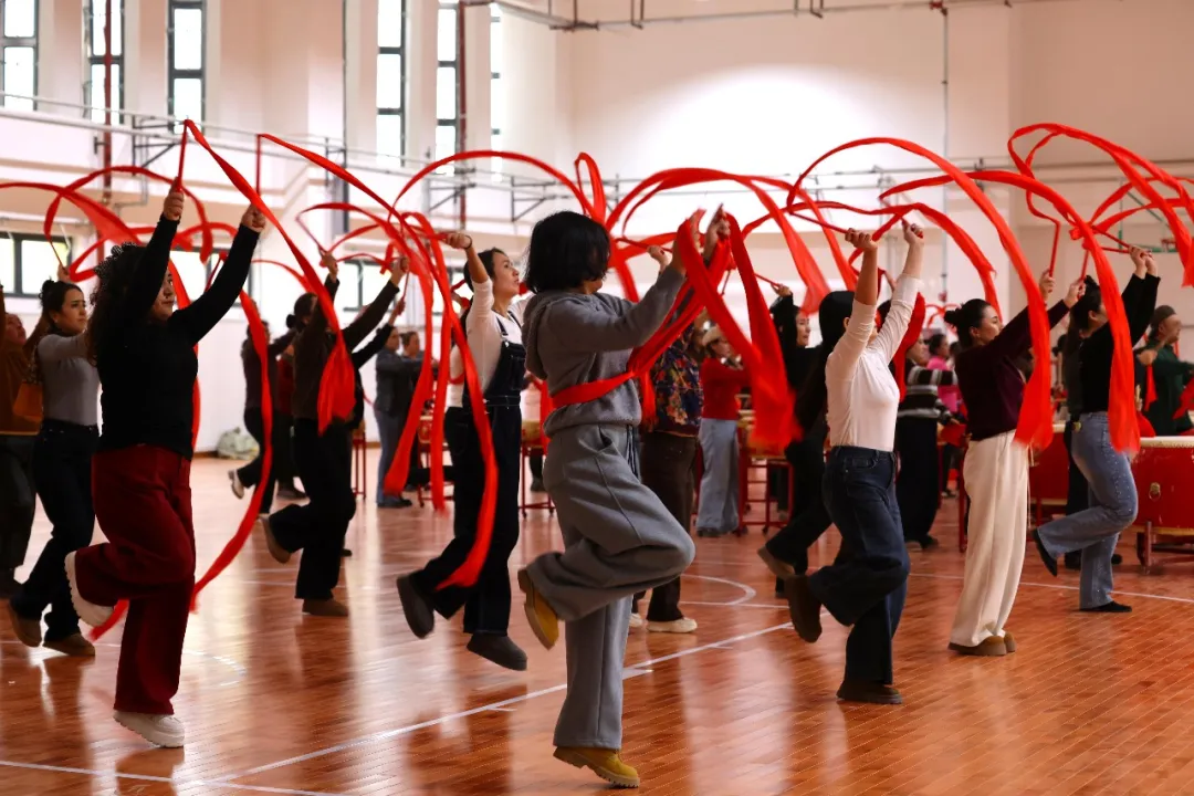 教育系统的排练现场则洋溢着传统与青春的碰撞。队员们以优美舞姿为纽带,将中华优秀传统文化与社火表演深度融合,举手抬足间既有民俗典雅韵味,又具新时代青春活力。排练间隙,各族师生围坐交流技巧、纠正细节,在精益求精中传承文化根脉,让中华优秀传统文化在年轻一代手中焕发新生。这种以文化为桥的传承与互动,正是文化润疆工程在校园的生动实践,为铸牢中华民族共同体意识注入青春力量。
