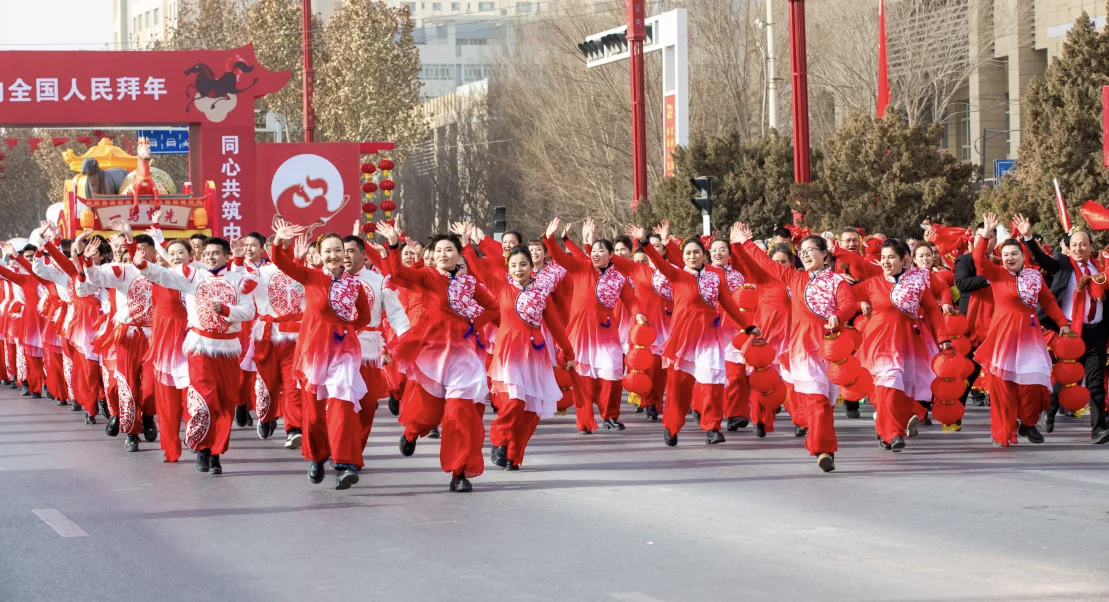 2月12日12时,阿图什市举办2026年“骐骥驰骋闹新春万马奔腾启新程”春节社火联欢活动。千余名演职人员身着盛装,组成17支社火方队,将锣鼓秧歌、舞龙舞狮、《玛纳斯》史诗演唱与特色歌舞融为一体,为各族群众献上了一场沉浸式新春盛宴。