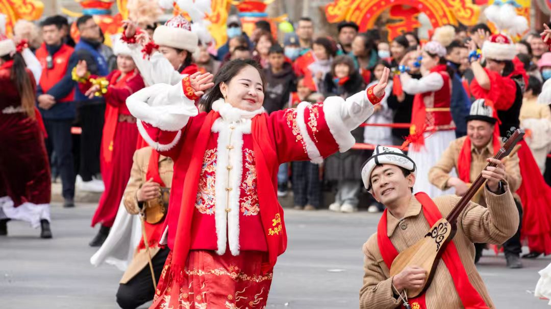 巡游展演在震天的锣鼓声中拉开帷幕。精彩节目轮番上演,充分展现了新时代各族群众昂扬向上、团结奋进的精神风貌。沿街市民群众驻足观赏、掌声不断,锣鼓声、欢笑声、喝彩声汇成一曲喜庆和谐的新春乐章。(全媒体记者苏比努尔·依明江米娜瓦尔·依布拉音谢智徐贤昊朱鑫)