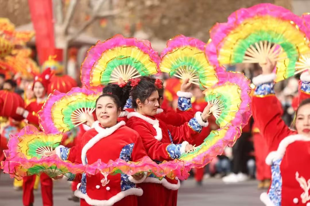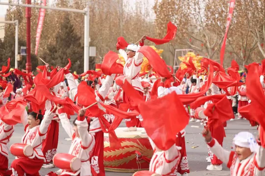 随着激昂的鼓乐声划破长空,彩烟齐放、无人机龙凤齐飞,象征着中华传统文化的祥瑞图腾在蓝天之上熠熠生辉。17支来自各乡镇(街道)、市直各单位及红旗农场的社火方队依次登场,开启了一场集民俗传承、民族团结、时代风采于一体的精彩巡游,生动诠释了铸牢中华民族共同体意识的丰富内涵。