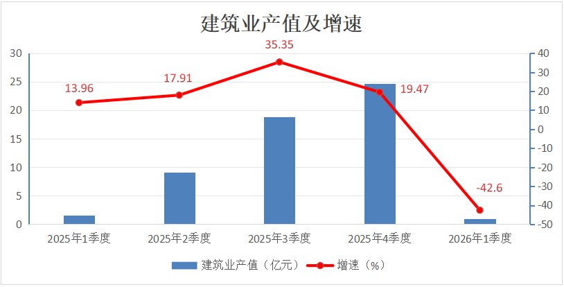 (三)建筑业面临持续下行压力。一季度,全市30家具有资质等级建筑企业总产值下降42.61%。