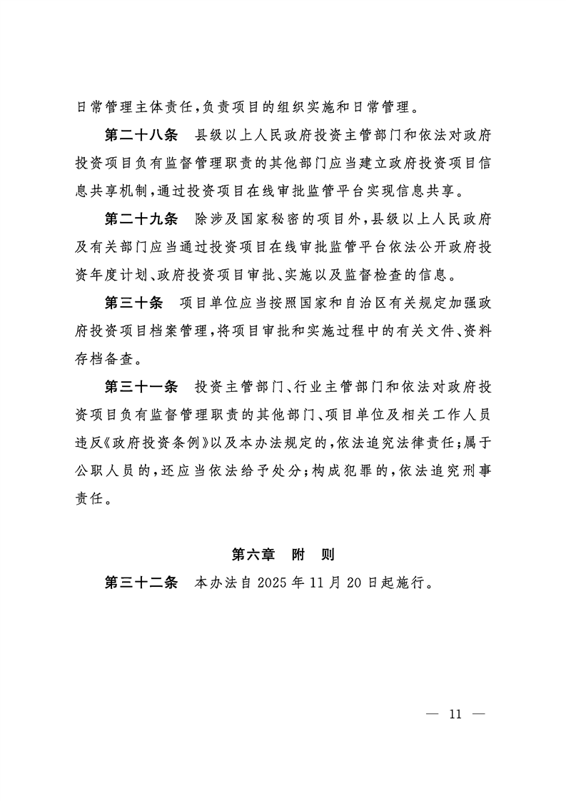 第247号《新疆维吾尔自治区政府投资管理办法》已经2025年9月18日自治区第自治区十四届人民政府第121次常务会议通过,现予公布,自2025年11月20日起施行。