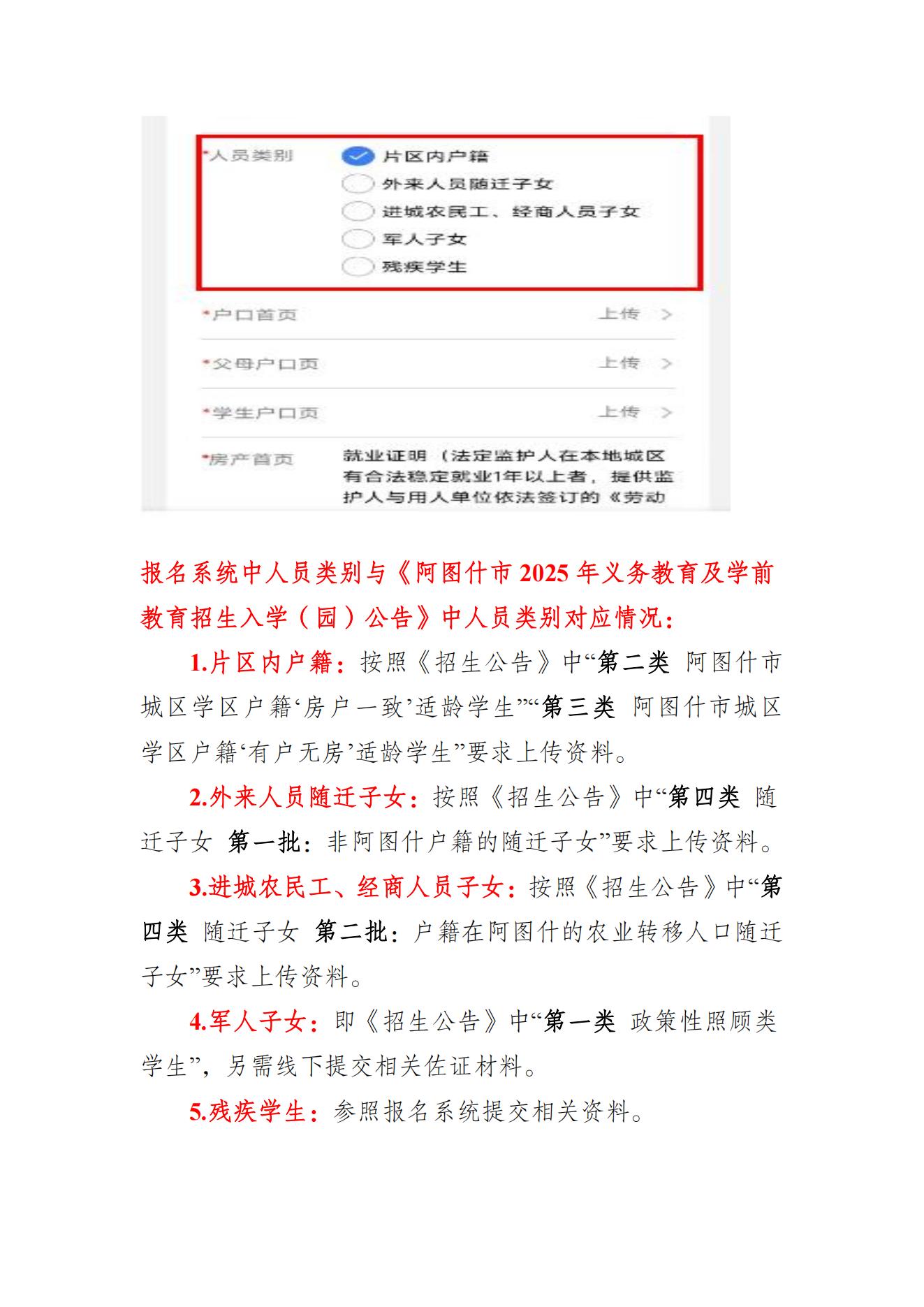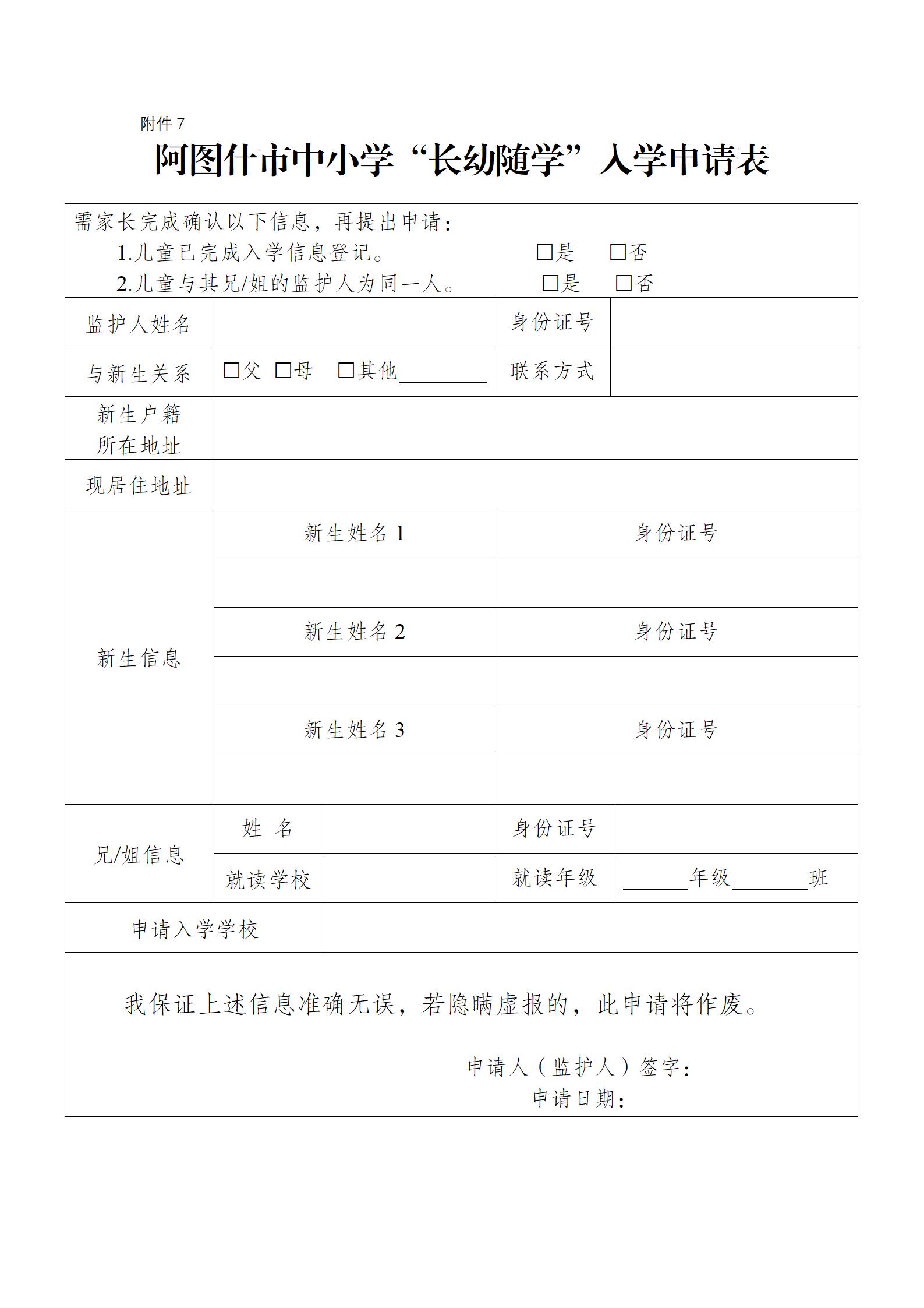 第二批:户籍在阿图什的农业转移人口随迁子女:适龄儿童少年法定监护人进城务工、从事商业经营而居住在学校招生区域内一年以上(护边员子女不受租房时间限制,只要具备城区常住条件且有监护能力,可安排入学),购买房产或租赁他人住宅,并实际居住,具备现住址相对稳定生活且具有适龄儿童监护能力,可在现居住地申请就学,学校按照规则予以录取。