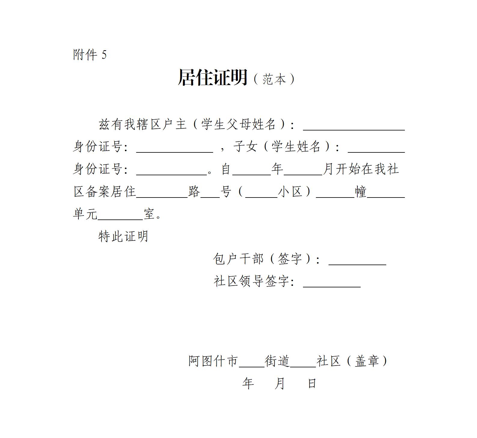 (五)2025年秋季,在阿图什市儿童福利院临设阿图什市昆山实验中学小学部办学点,面向新城区按照就近就便原则招生一年级新生。