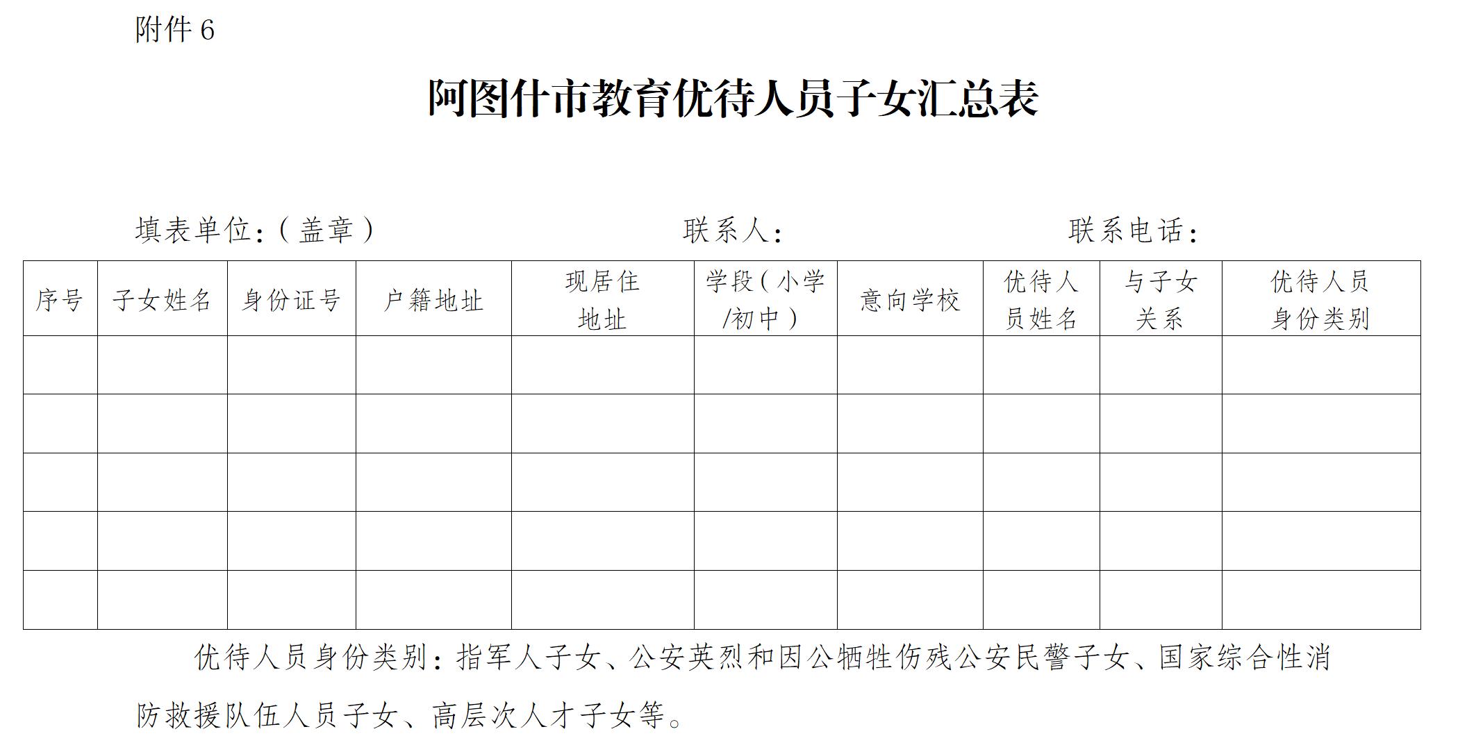 第一类1-4项所需资料:①加盖单位公章的《阿图什市教育优待人员子女汇总表》;②户口首页、父母户口页、适龄儿童户口页;③按照相关文件规定的有关证明(佐证)材料。(以上纸质材料由单位统一报送,线上报名资料根据第二类至第四类有关要求提交,证明材料若涉密可不作要求)