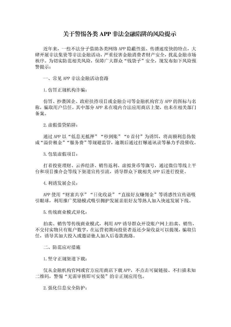 关于警惕各类APP非法金融陷阱的风险提示