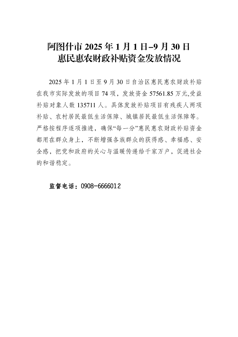 关于阿图什市1-9月惠农惠民财政资金一卡通发放情况