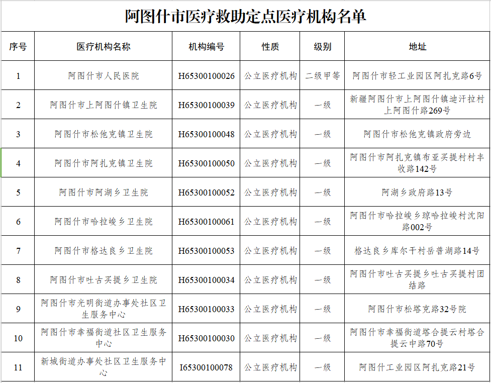 关于公布阿图什市医疗救助定点医疗机构名单的公告