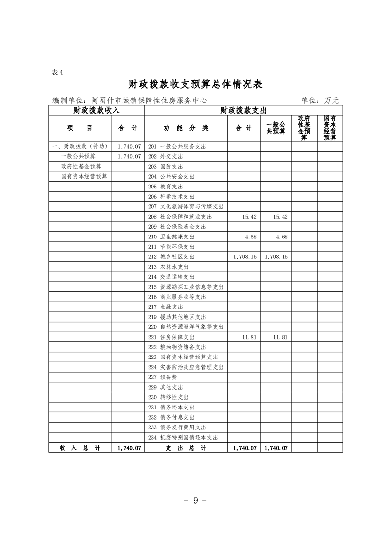 阿图什市城镇保障性住房服务中心2023年单位预算公开