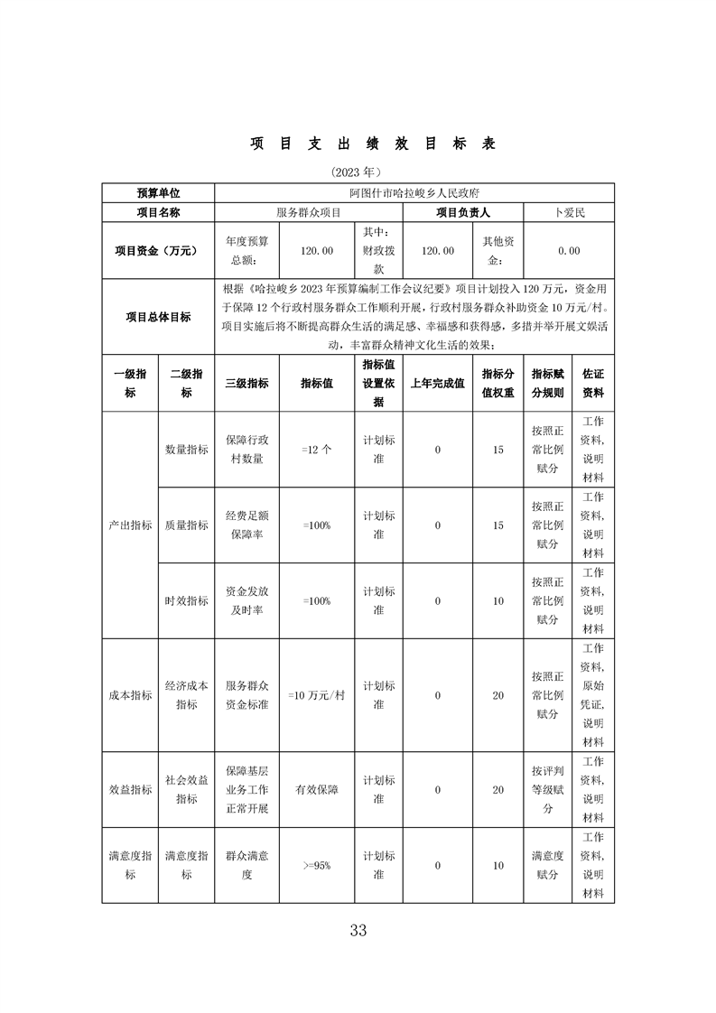 2023年度新疆阿图什市哈拉峻乡人民政府预算公开说明